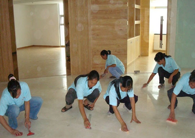 把所有的做完以后,最后就是地面的清洗了。清潔前,需要分清楚地面是木地板、瓷磚還是石材的,根據(jù)材料選擇專用清潔劑稀釋清洗。地面上的膠漬可用刀片清除,頑固的可用去膠劑處理;而對于地腳線,可用用毛巾擦拭,用刀片去掉各種膠跡、涂料點(diǎn)等。