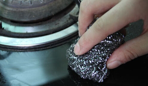 2)將清潔劑灑在被保潔的硬表面上,再用鋼絲球去來(lái)回擦試